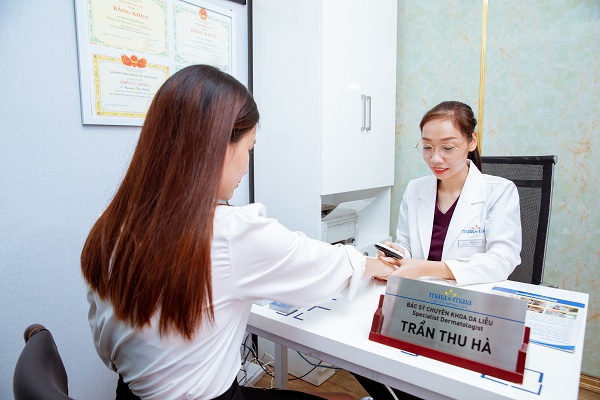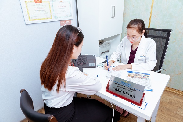 Bác sĩ tư vấn điều trị sẹo thâm cho khách hàng
