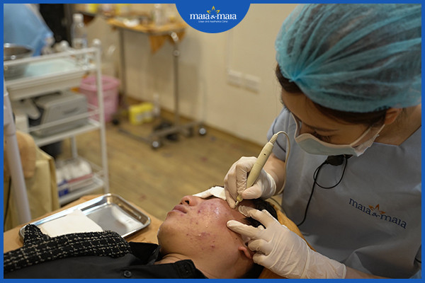 Kỹ thuật loại bỏ nhân mụn bằng công nghệ Laser Diot tại phòng khám Maia giúp bạn lấy sạch hoàn toàn nhân mụn mà không gây tổn thương hay sẹo mụn. Các điều dưỡng viên sẽ sử dụng dầu Laser có kích thước siêu nhỏ để mở ra đầu mụn và sau đó loại bỏ nhân mụn một cách dễ dàng. Đây là một phương pháp có độ an toàn cao và đảm bảo vô trùng vô khuẩn tối đa, hỗ trợ điều trị mụn vô cùng nhanh chóng.