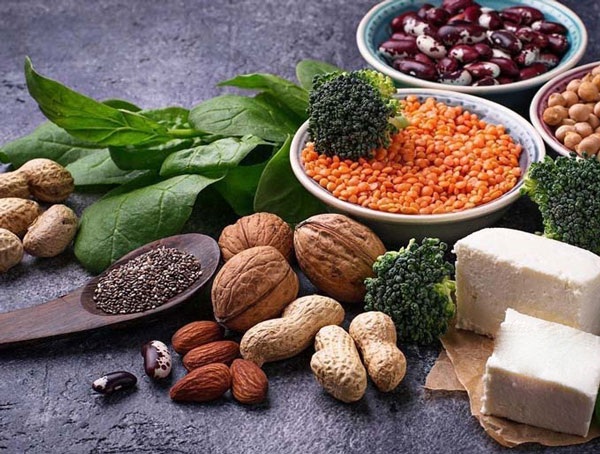 Lượng protein được khuyến cáo cho một người trưởng thành là khoảng 0,8 gam cho mỗi một kg trọng lượng cơ thể. Bạn có thể xem xét bổ sung các thực phẩm giàu protein từ thực vật như: các loại hạt, các loại đậu, men dinh dưỡng.
